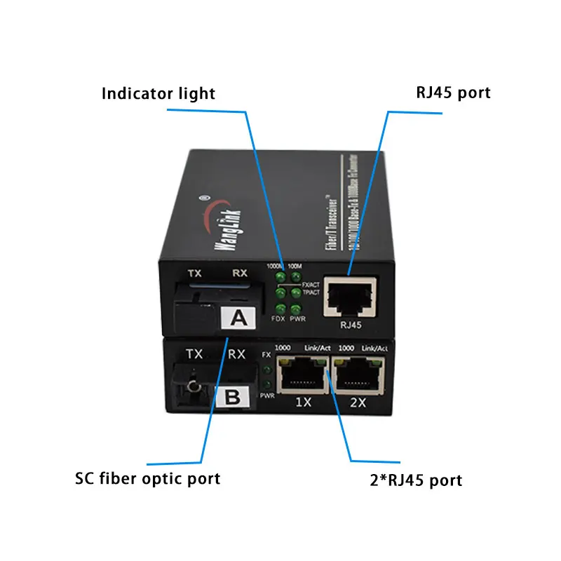 1.25G fiber media converter 2RJ45 port + 1 fiber media converter 1 rj45 port transceiver 2PCS