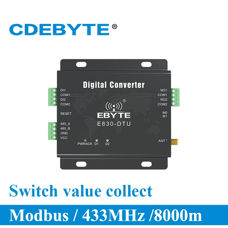 E830-DTU(2R2-433L) 433MHz Modbus RTU Switch Value Acquistion 2 Channel 30dBm Wireless RF Transceivers