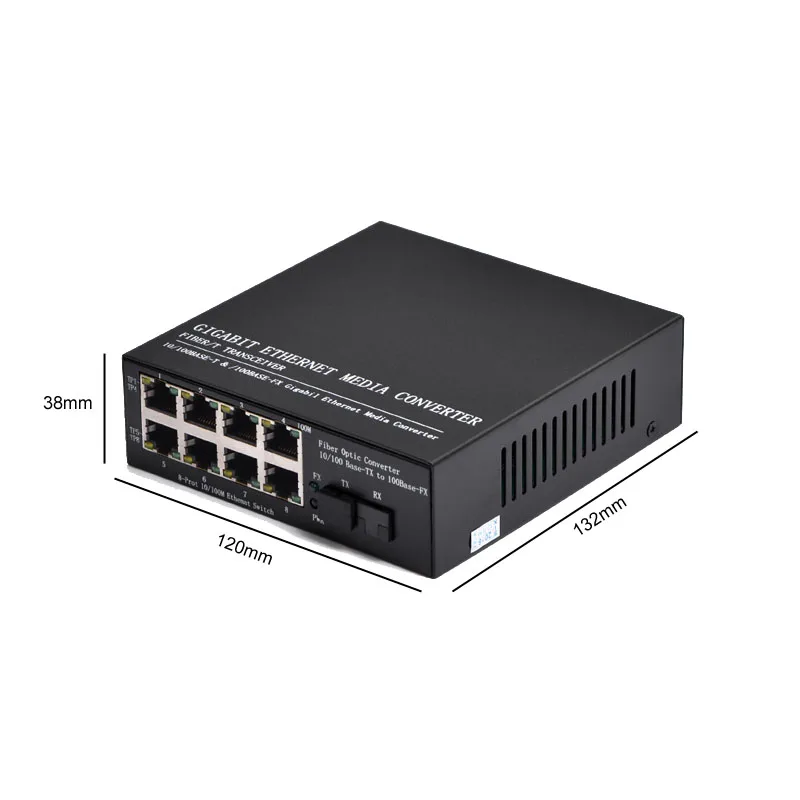 Fast Ethernet Media Converter 10/100Mbps Optical Media Converter 8 Ports RJ45 to 1 Port Singlemode SM Fiber SC Transceiver 20KM