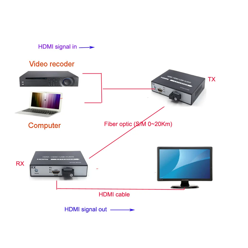 High Quality HDMI over Fiber Optic media converters Transmitter and Recevier 1310/1550nm, 1080P high defination Super stability