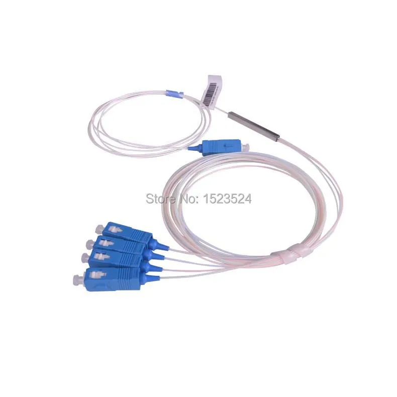 Aliexpress has Free Shipping 10pcs/lot 0.9mm Steel Tube 1x4 Mini Blockless Fiber Optic PLC Splitter with SC/PC Connector for just $ shipped.