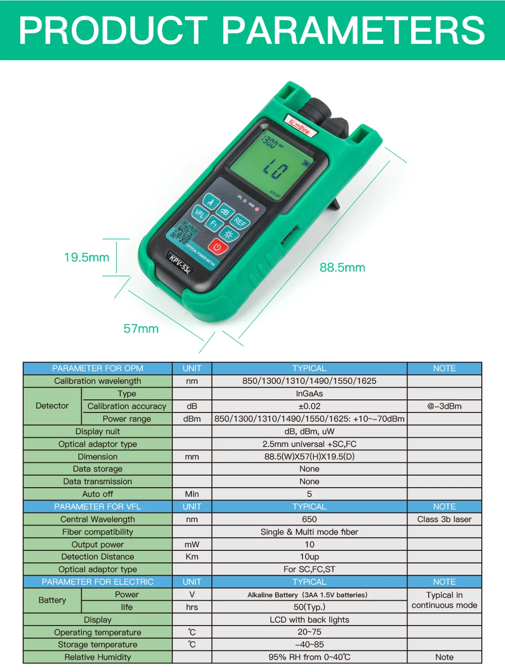 Handheld Komshine KPV-53 Optical power meter with 10mw VFL function OPM SC connector