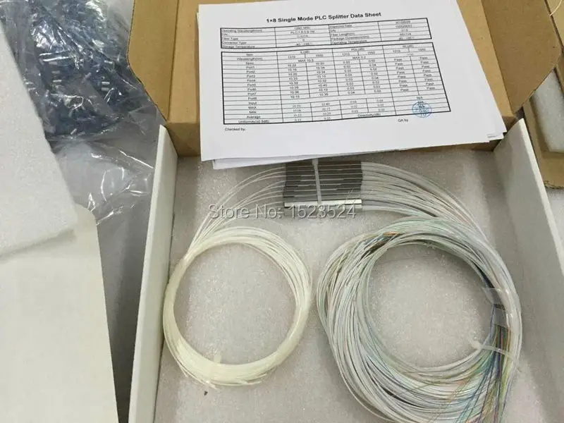 Aliexpress has Free Shipping 10pcs/lot 1X8 Blockless PLC Splitter 900um Steel Tube 1*8 Mini Optical Fibra Splitter Without Connector for just $ shipped.