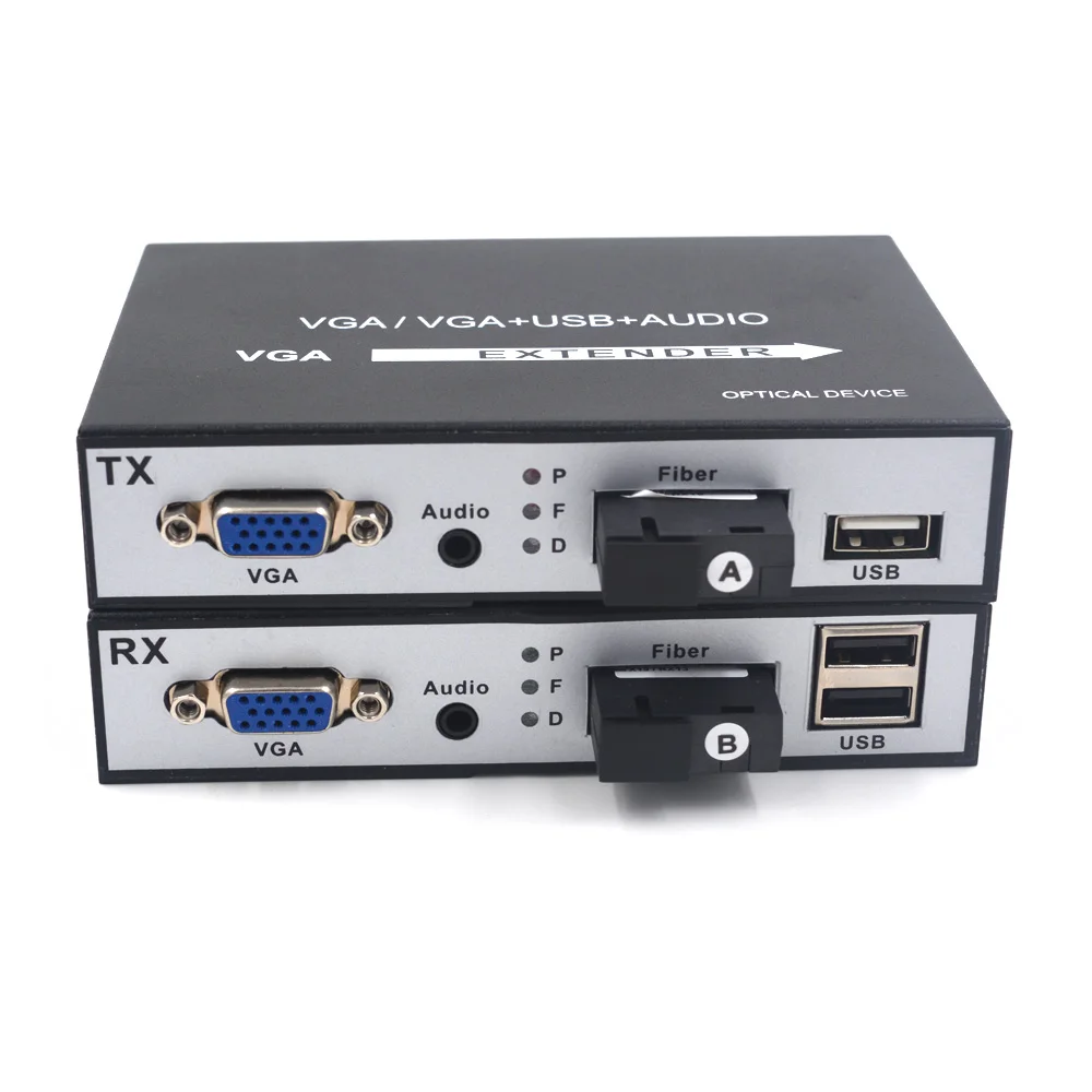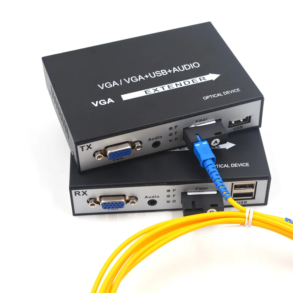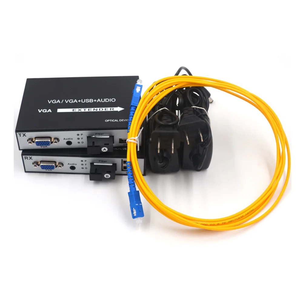 High Quality 1080P VGA Extenders VGA to Fiber Media Converters with KVM USB and Stereo 3.5mm Audio- SC Singlemode 20Km