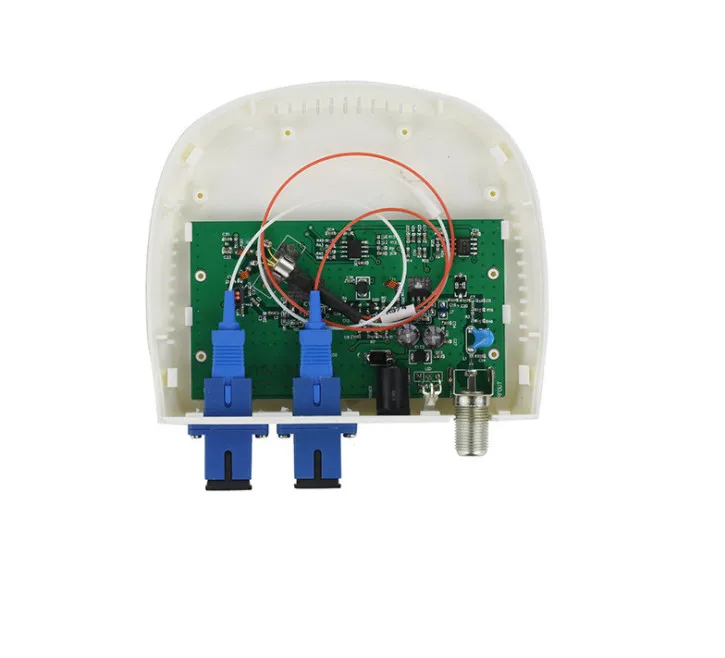Aliexpress has Fiber Optical FTTH optical receiver SC/APC-SC/UPC with WDM and AGC Mini Node Indoor Optical Receiver with white plastic case for just $ shipped.